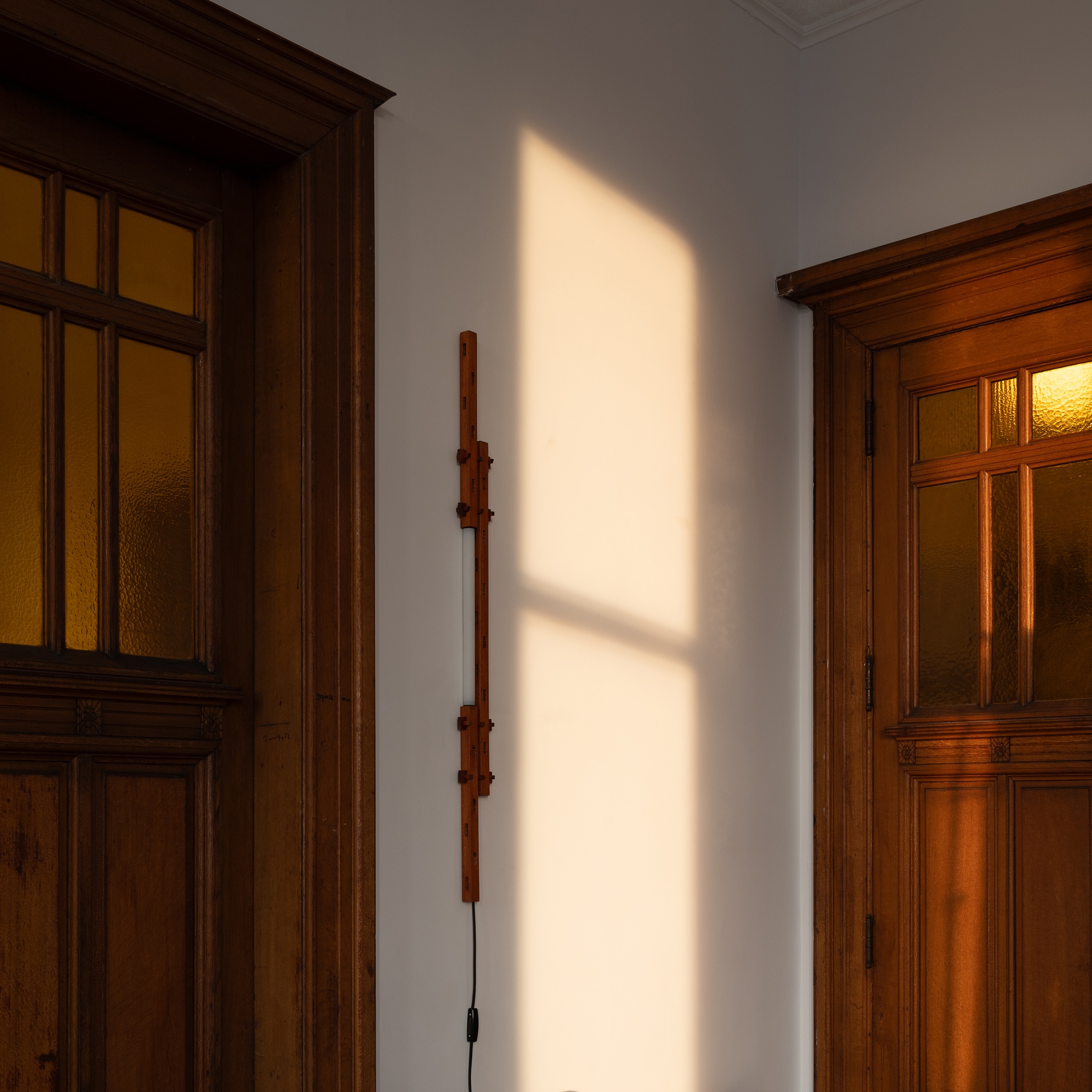 Tate たて is meer dan alleen een wandlamp. Het is een studie in verticaliteit. Vervaardigd uit eerlijk hout en zacht glas, staat het ontwerp symbool voor het proces van opstijgen; standvastig te midden van de horizontale lijnen van het dagelijks leven.